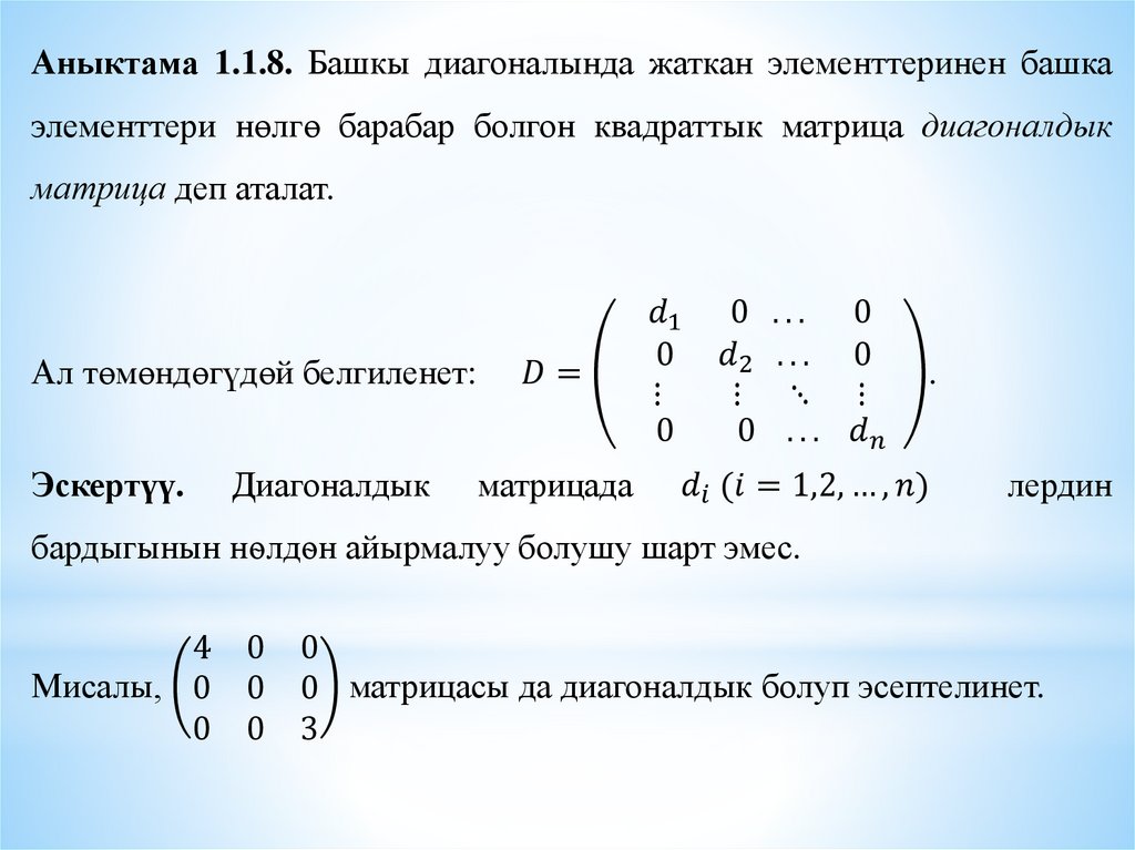 Аныктама 1.1.1. Математикалык обьектилерден (же сандардан, же