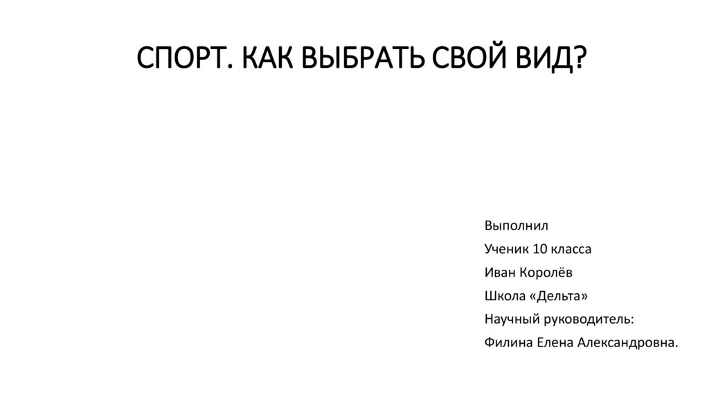 СПОРТ. КАК ВЫБРАТЬ СВОЙ ВИД?Выполнил