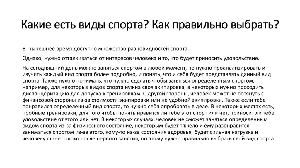 спорта. Также нужно понимать, что нужно сделать чтобы заняться определенным спортом,