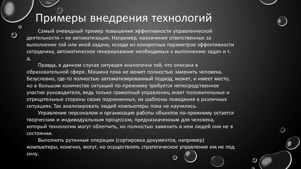 Примеры внедрения технологийСамый очевидный пример повышения эффективности управленческой