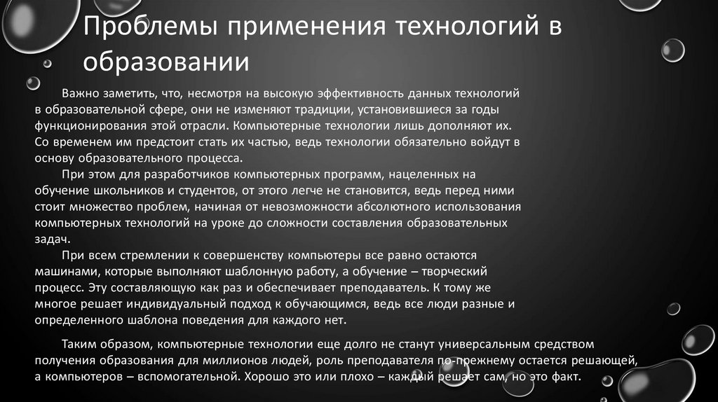 образовательной технологией не удастся, поэтому вышеописанные проблемы