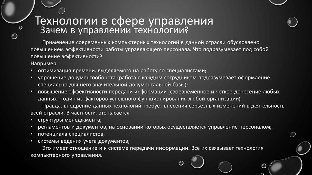 Сначала стоит рассмотреть ситуацию в контексте, когда роль технологий в управлении