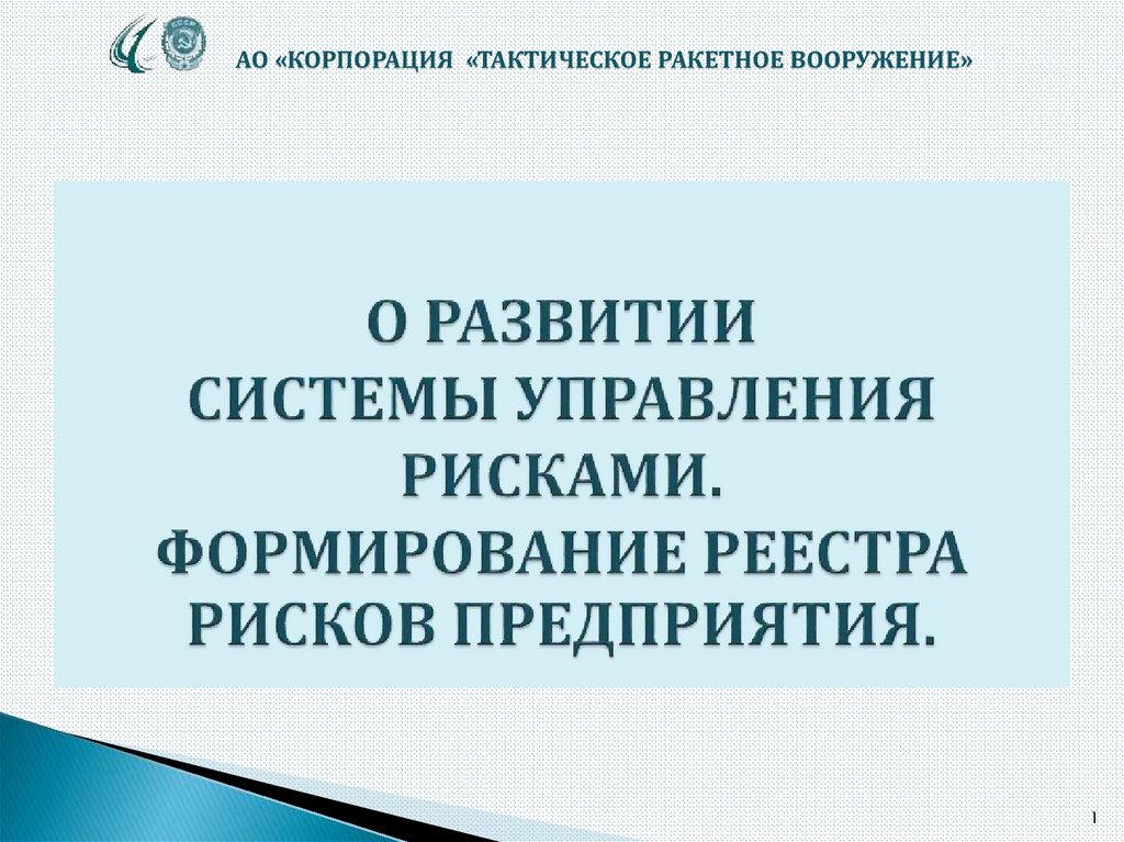 1. О РАЗВИТИИ СИСТЕМЫ УПРАВЛЕНИЯ РИСКАМИ. ФОРМИРОВАНИЕ РЕЕСТРА РИСКОВ ПРЕДПРИЯТИЯ.