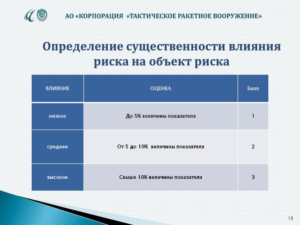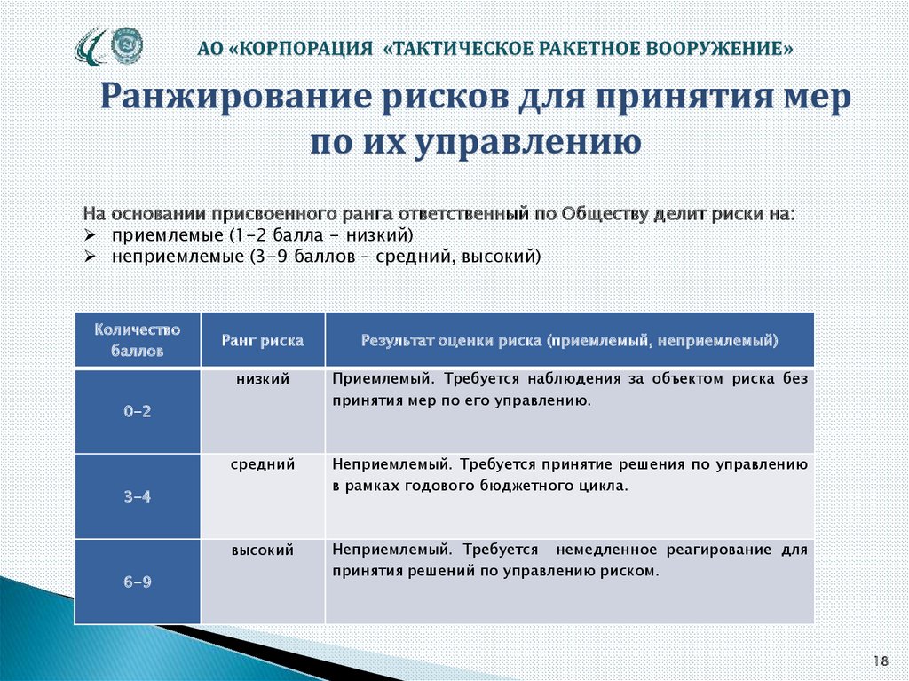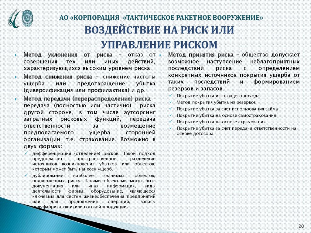АО «КОРПОРАЦИЯ «ТАКТИЧЕСКОЕ РАКЕТНОЕ ВООРУЖЕНИЕ»ВОЗДЕЙСТВИЕ НА РИСК ИЛИ