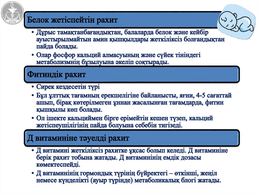 • Шала туылу рахиттің дамуына икемдейді,