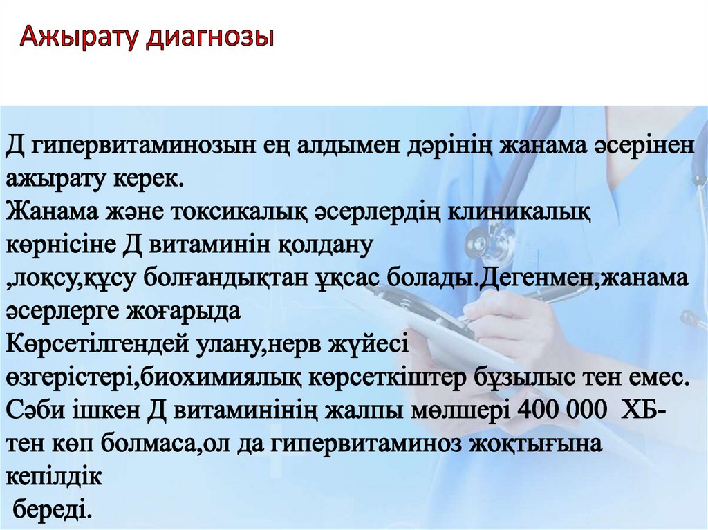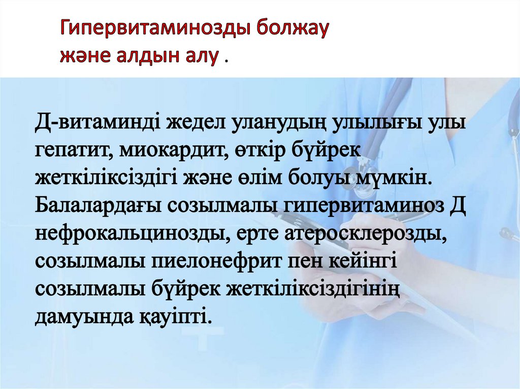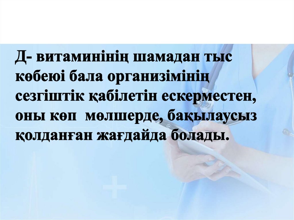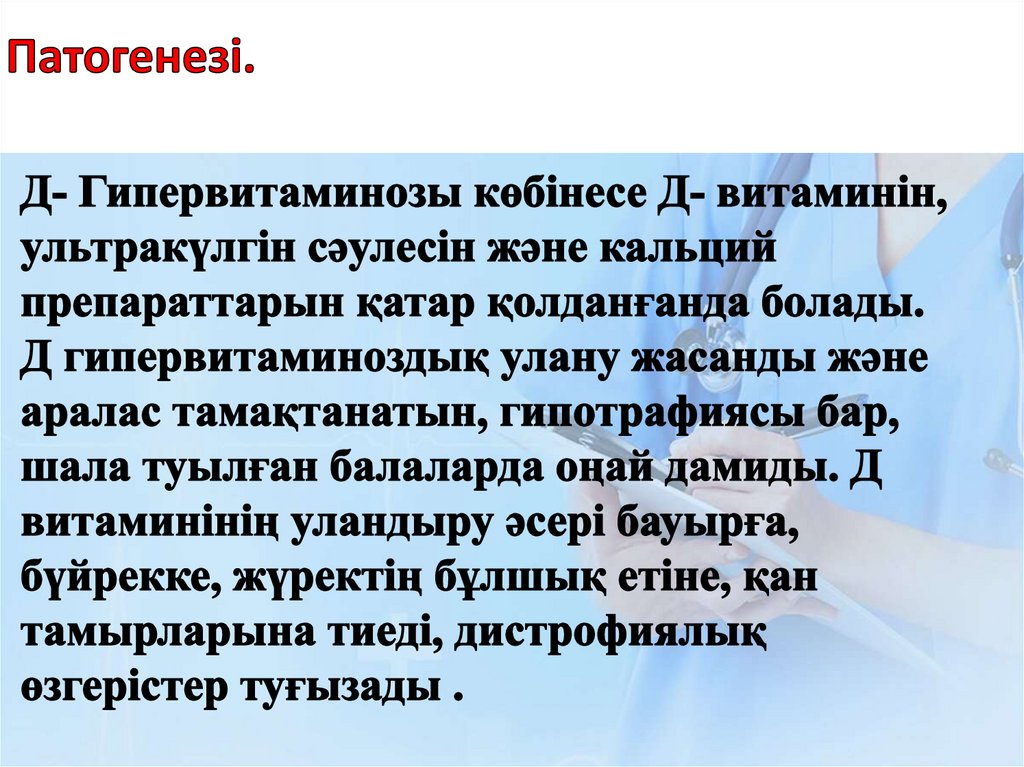 • Тағаммен Д витаминінің аз түсуі.