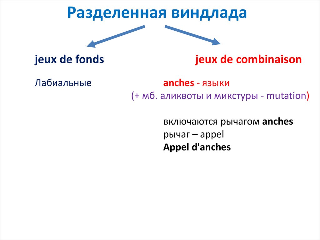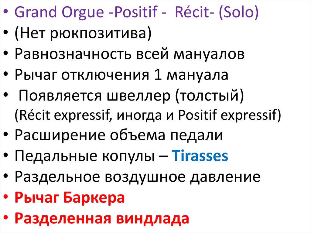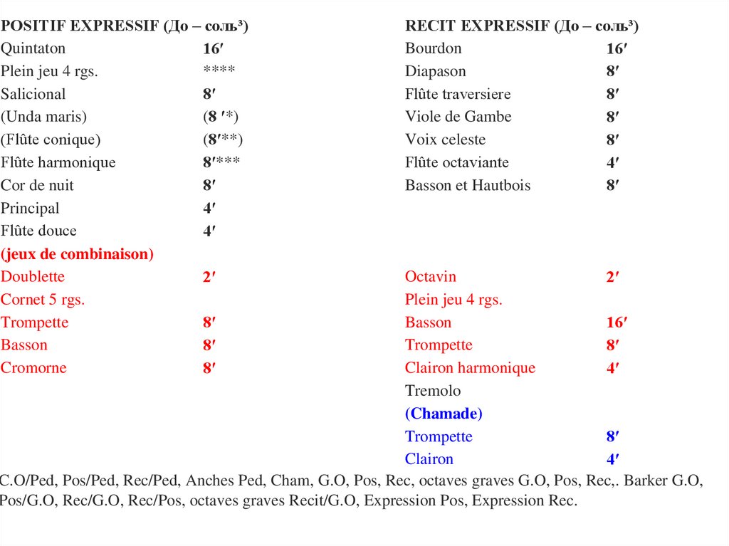 • Языки – Bombarde 16, Trompette 8, Clairon 4