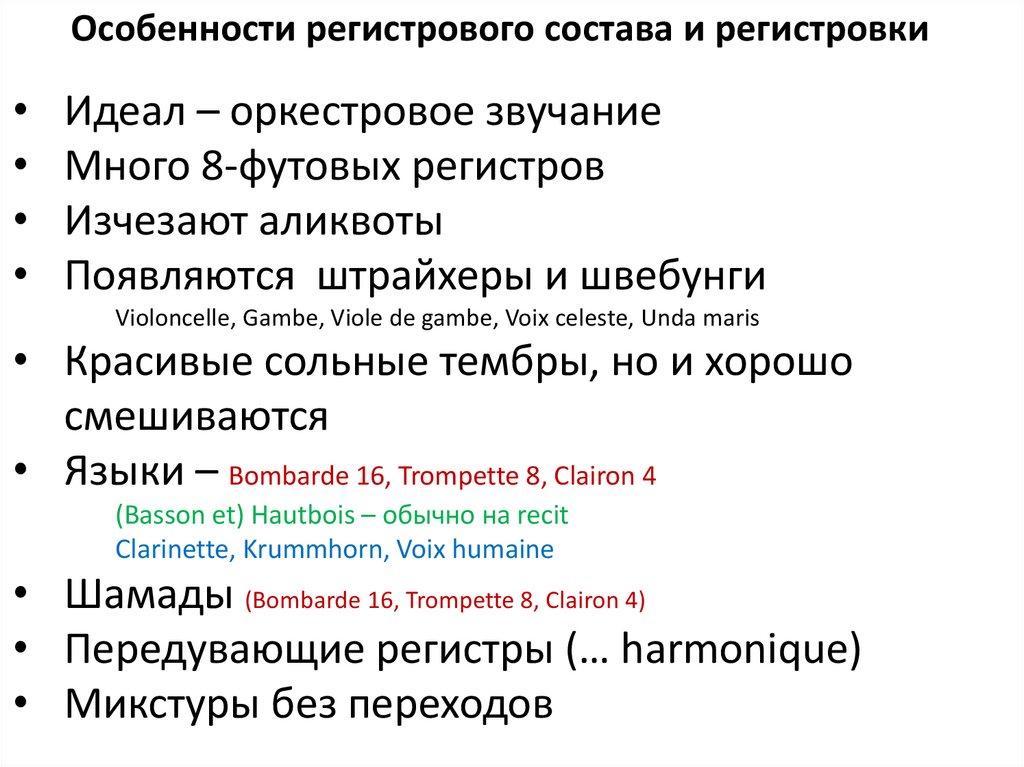 Особенности регистрового состава и регистровкиИдеал – оркестровое звучание