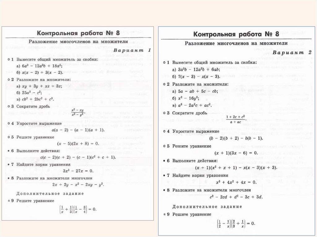 Контрольная работа №8 по теме «Разложение многочленов на множители»