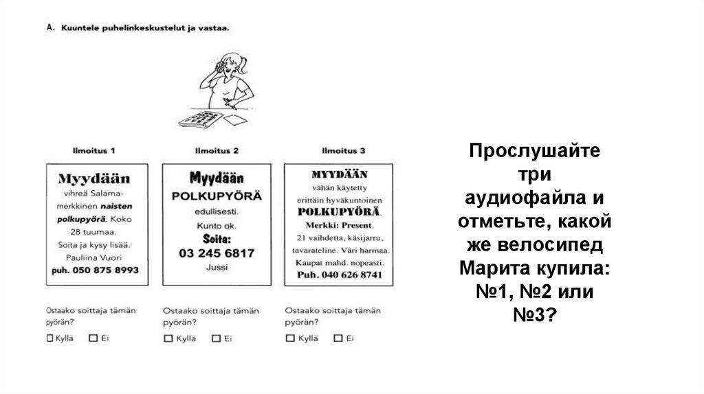 Марита хочет купить подержанный велосипед. Она нашла три объявления и