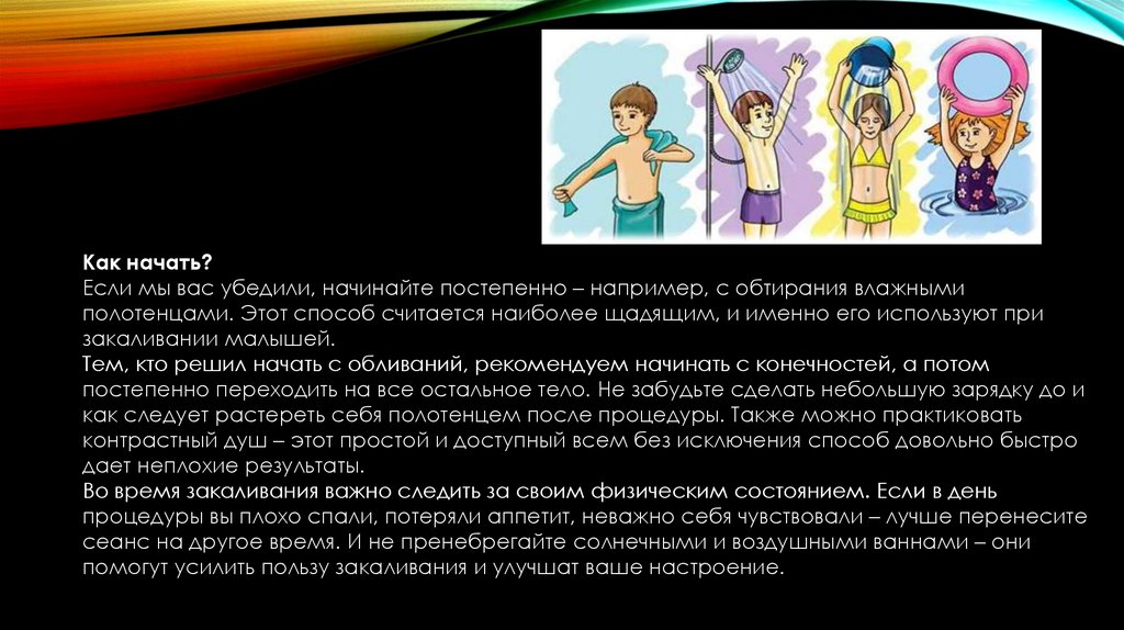 Как начать?Если мы вас убедили, начинайте постепенно – например, с обтирания влажными