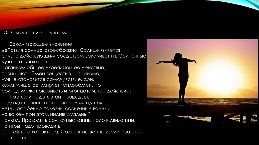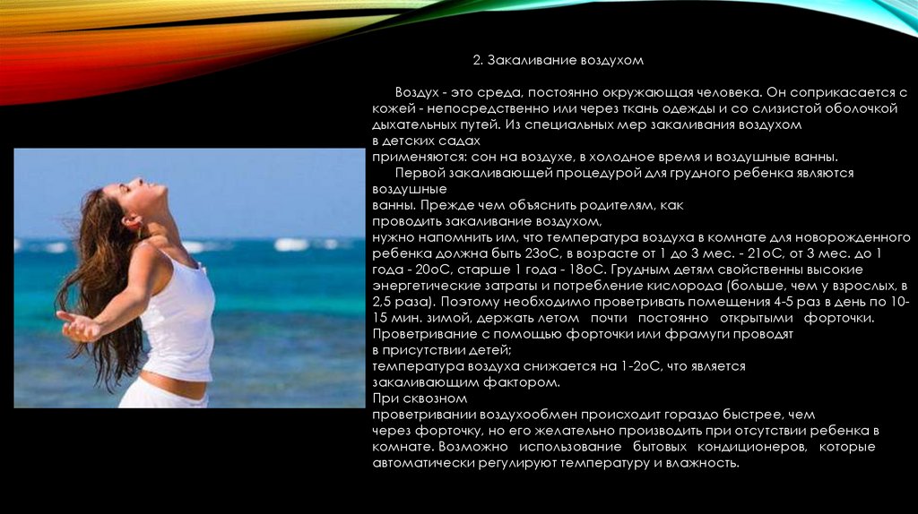 2. Закаливание воздухомВоздух - это среда, постоянно окружающая человека. Он соприкасается с