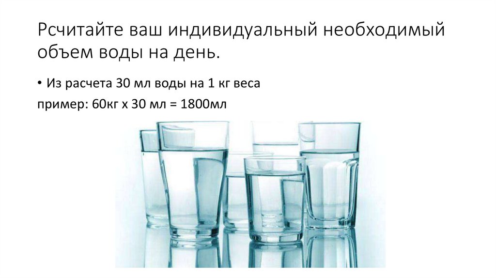 Рсчитайте ваш индивидуальный необходимыйобъем воды на день.