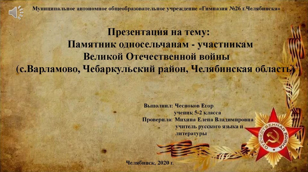 Муниципальное автономное общеобразовательное учреждение «Гимназия №26 г.Челябинска»Презентация на тему: