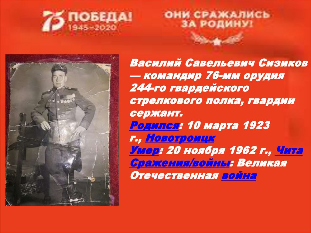 Василий Савельевич Сизиков— командир 76-мм орудия