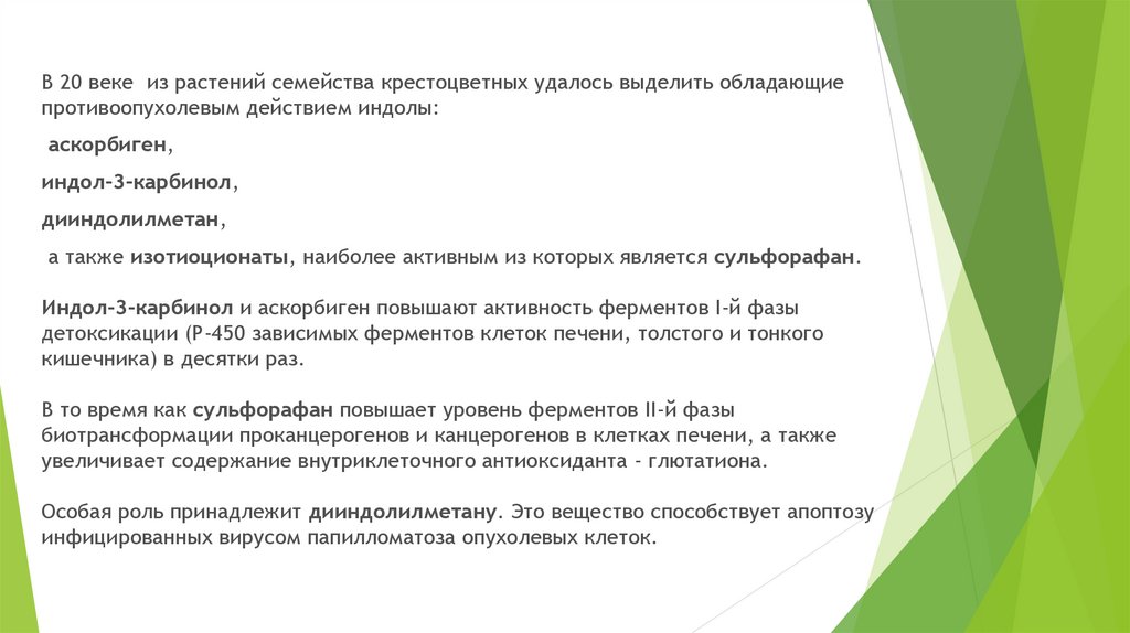 В 20 веке из растений семейства крестоцветных удалось выделить обладающиепротивоопухолевым действием индолы: