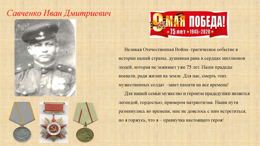 Савченко Иван ДмитриевичВеликая Отечественная Война–трагическое событие в