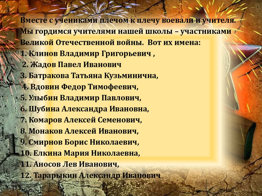 Вместе с учениками плечом к плечу воевали и учителя.Мы гордимся учителями нашей школы – участниками