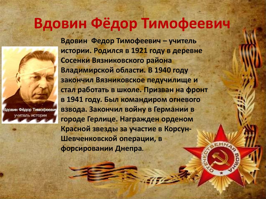 Вдовин Фёдор ТимофеевичВдовин Федор Тимофеевич – учитель