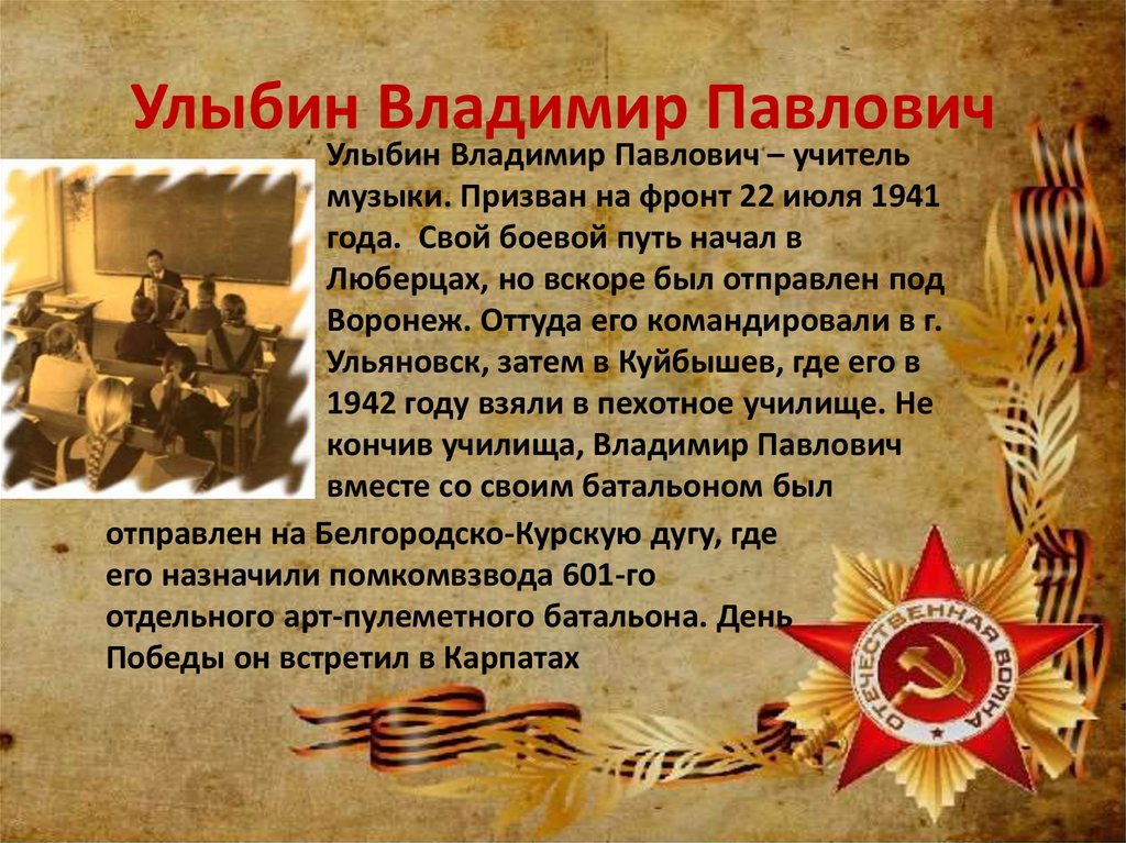 Улыбин Владимир ПавловичУлыбин Владимир Павлович – учитель