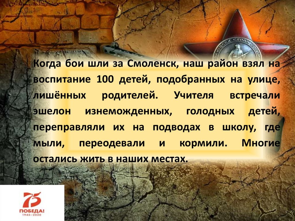 Когда бои шли за Смоленск, наш район взял навоспитание 100 детей, подобранных на улице,