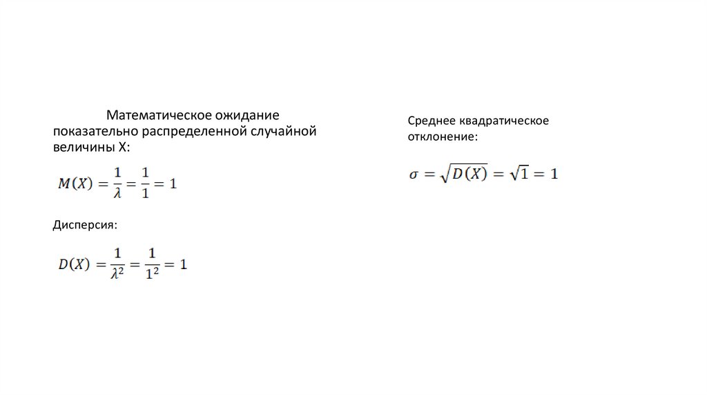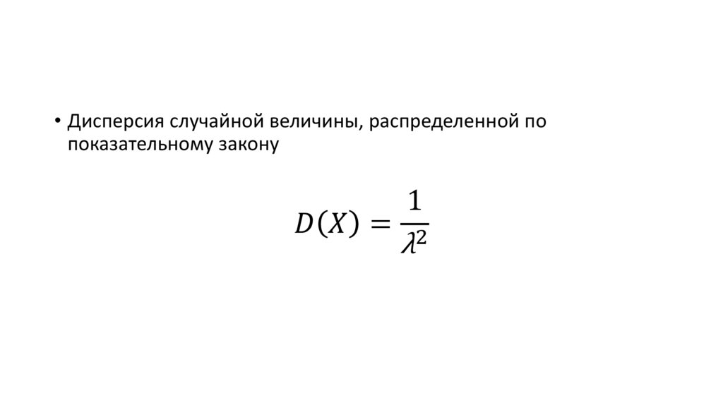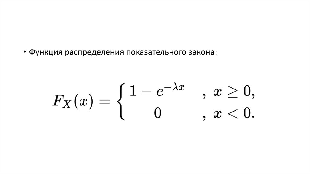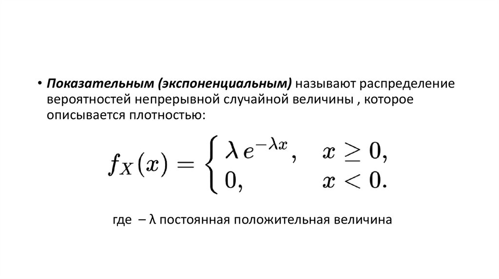 • Показательным (экспоненциальным) называют распределениевероятностей непрерывной случайной величины , которое