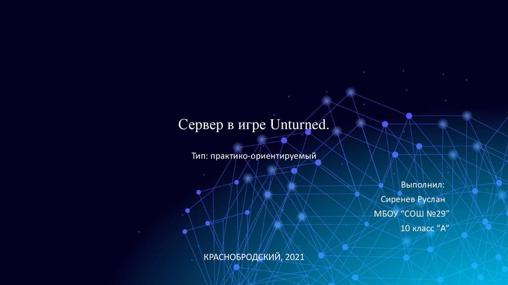 • Цель проекта: Создать сервер на платформе игры Unturned, и получить за негодоход.