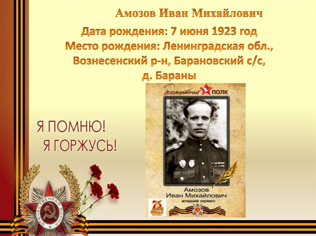 Нет в России семьи такой, Где б не памятен был свой герой