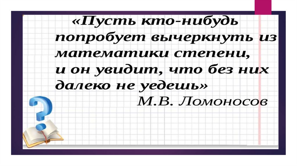 Учить вычислять значение степени и выражений,