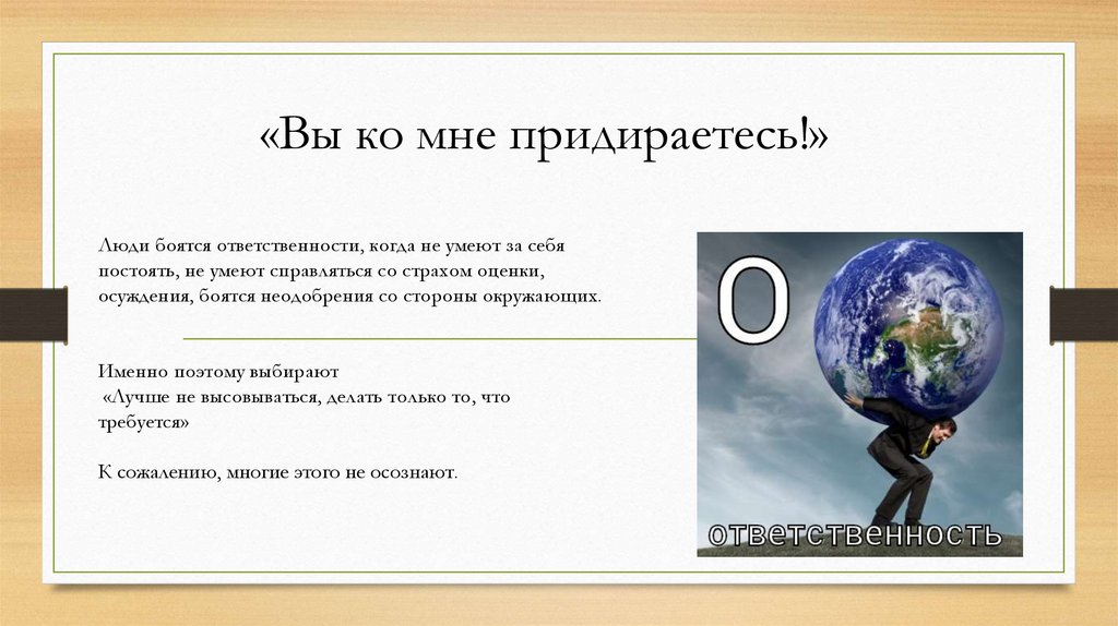 «Вы ко мне придираетесь!»Люди боятся ответственности, когда не умеют за себя
