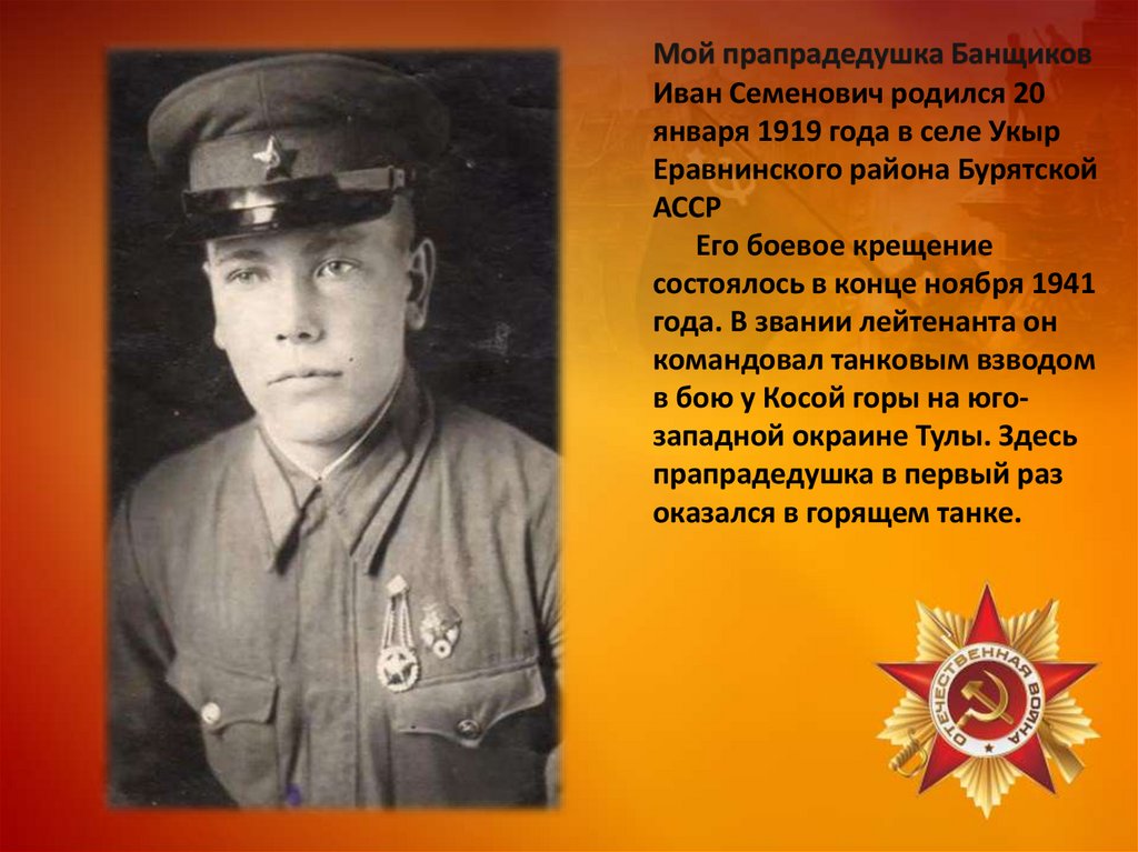 Мой прапрадедушка БанщиковИван Семенович родился 20
