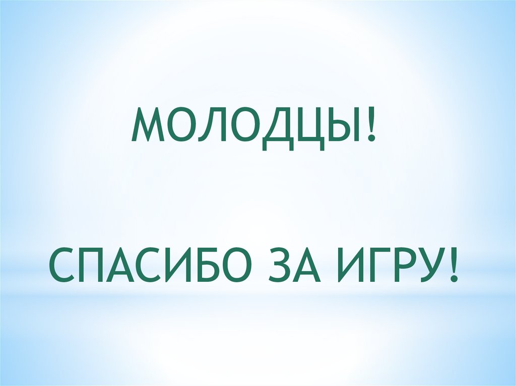 МОЛОДЦЫ!СПАСИБО ЗА ИГРУ!