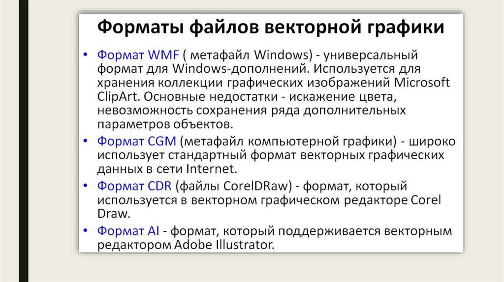 они определяют способ хранения информации в файле (растровый или векторный), а