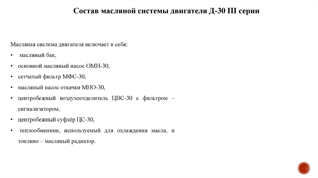 Состав масляной системы двигателя Д-30 III серииМасляная система двигателя включает в себя: