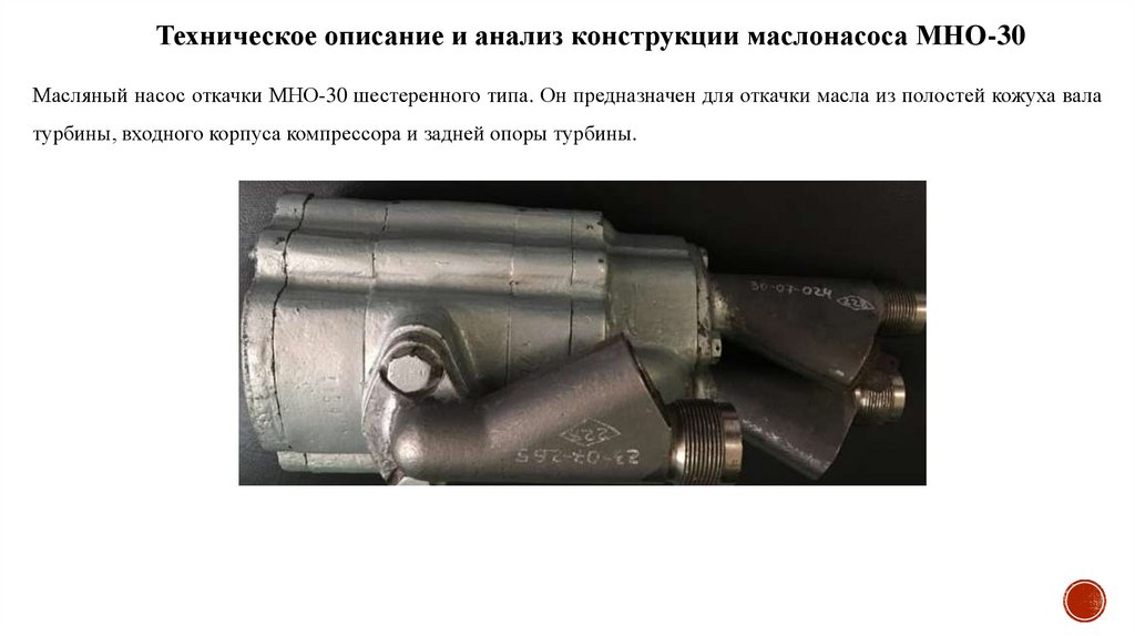 Техническое описание и анализ конструкции маслонасоса МНО-30Масляный насос откачки МНО-30 шестеренного типа. Он предназначен для откачки масла из полостей кожуха вала