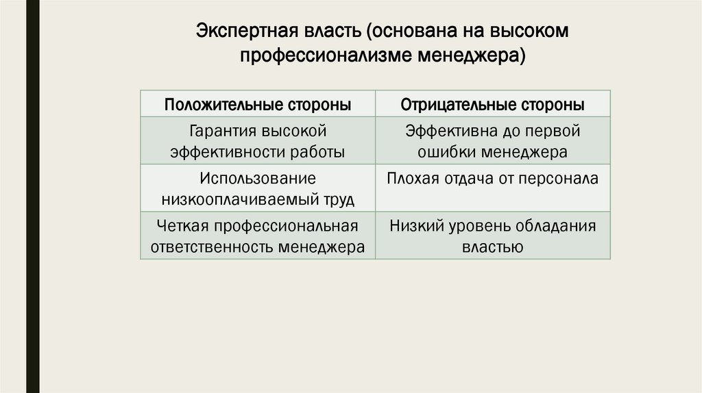 Экспертная власть (основана на высокомпрофессионализме менеджера)