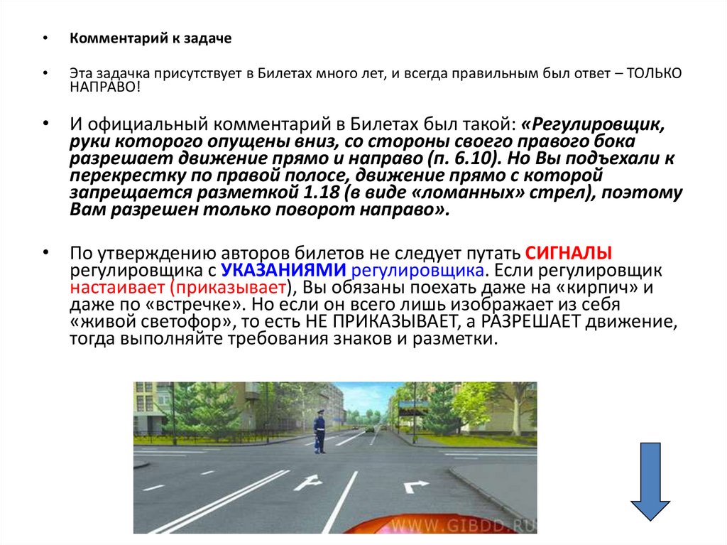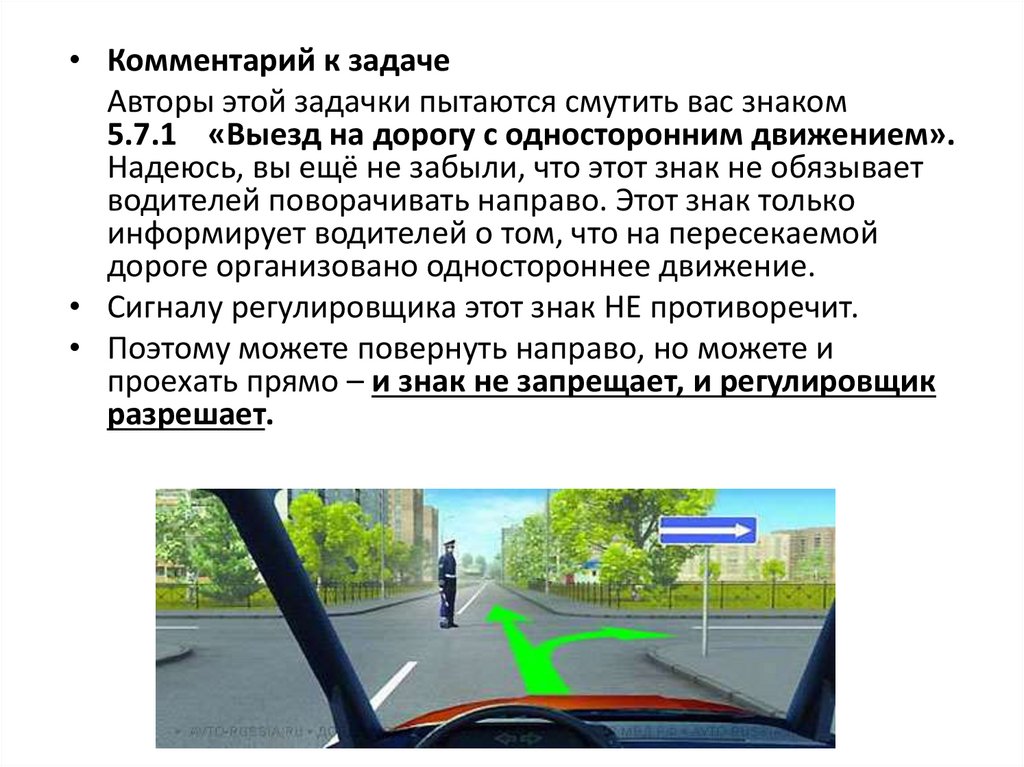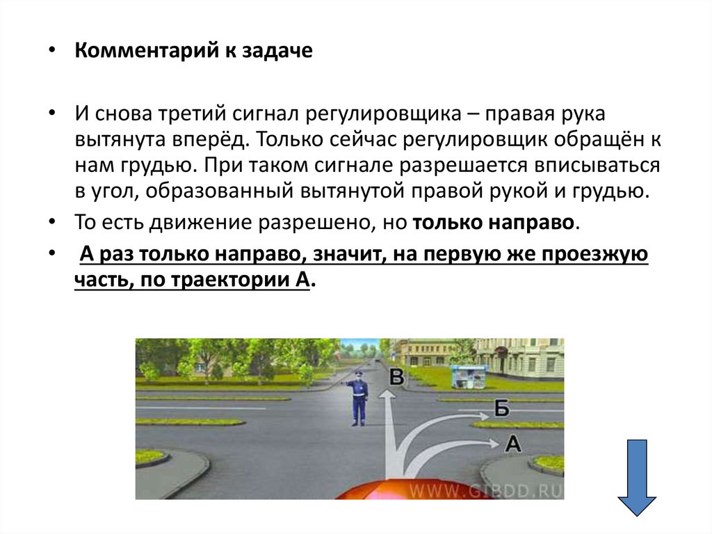 • Комментарий к задаче• И снова третий сигнал регулировщика – правая рука