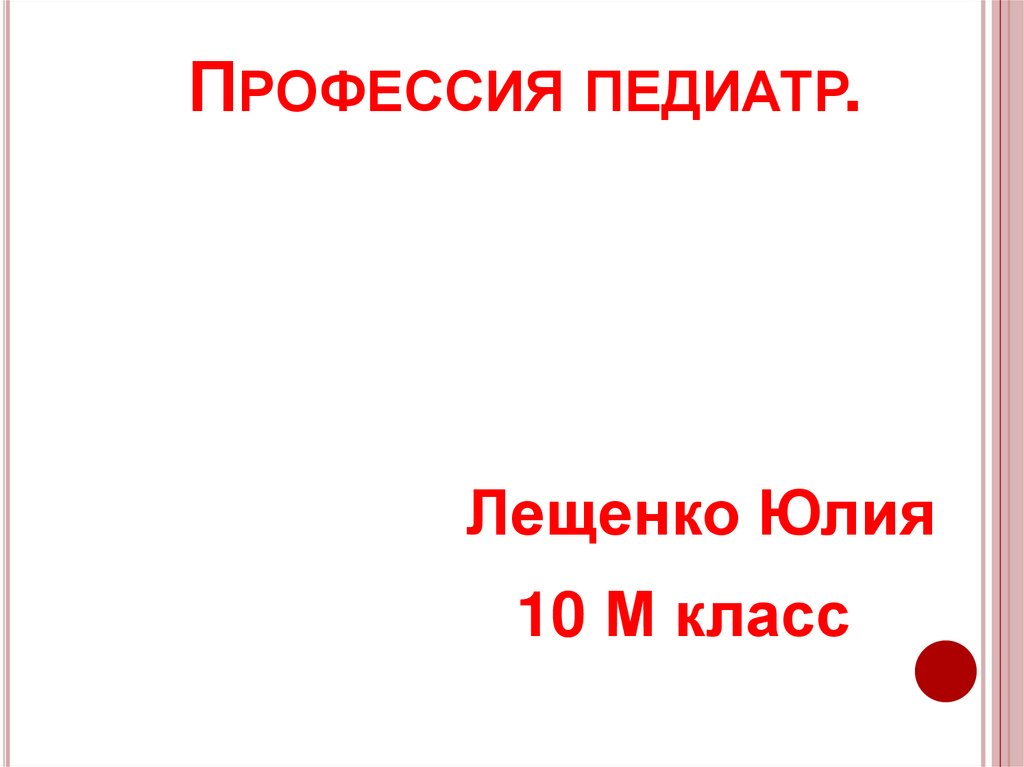 ПРОФЕССИЯ ПЕДИАТР.Лещенко Юлия