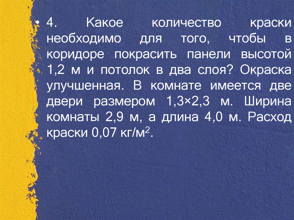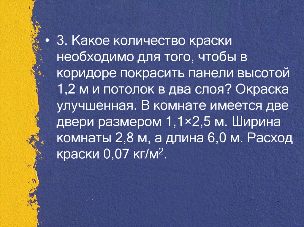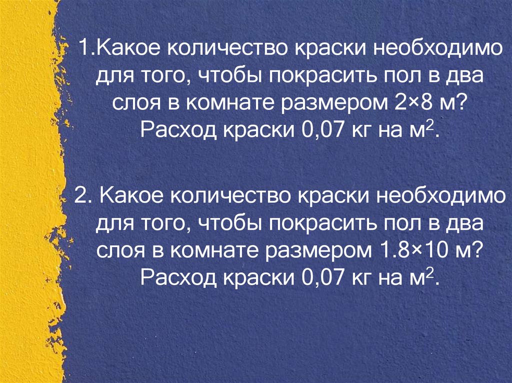 1.Какое количество краски необходимодля того, чтобы покрасить пол в два