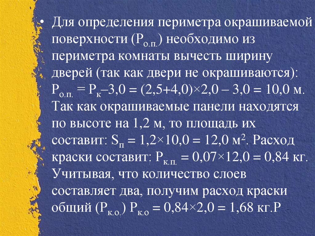 • Для определения периметра окрашиваемойповерхности (Ро.п.) необходимо из