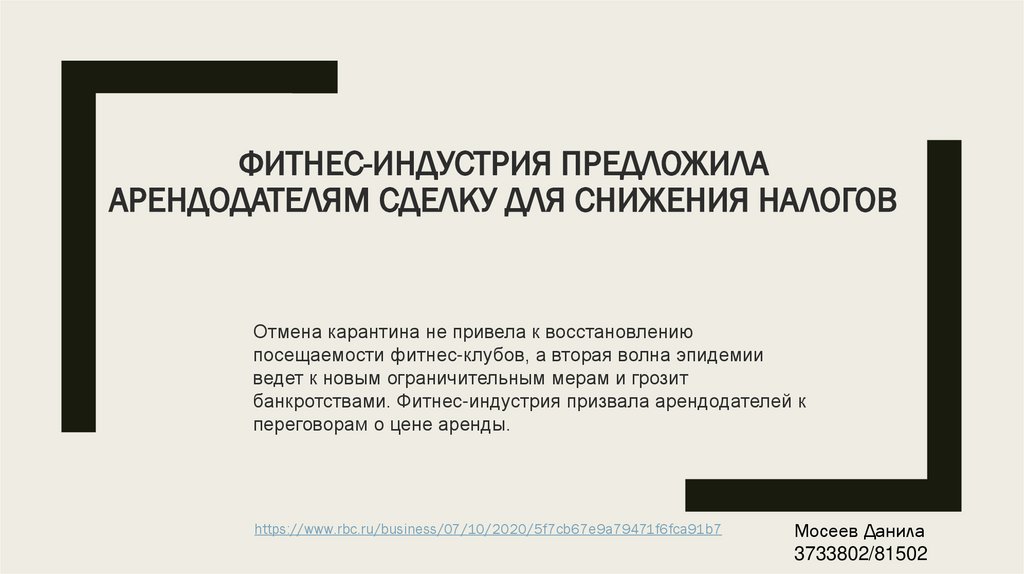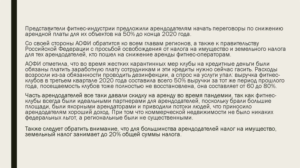 ФИТНЕС-ИНДУСТРИЯ ПРЕДЛОЖИЛААРЕНДОДАТЕЛЯМ СДЕЛКУ ДЛЯ СНИЖЕНИЯ НАЛОГОВ