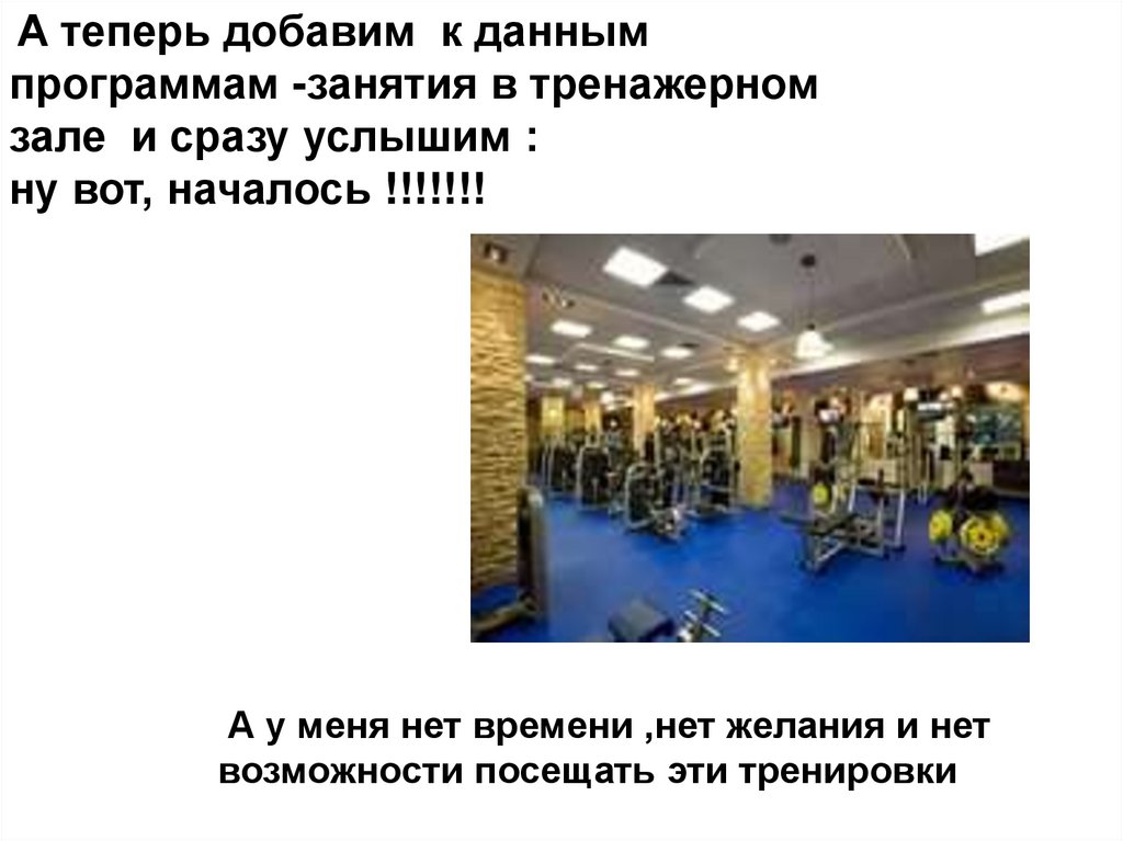 А теперь добавим к даннымпрограммам -занятия в тренажерном