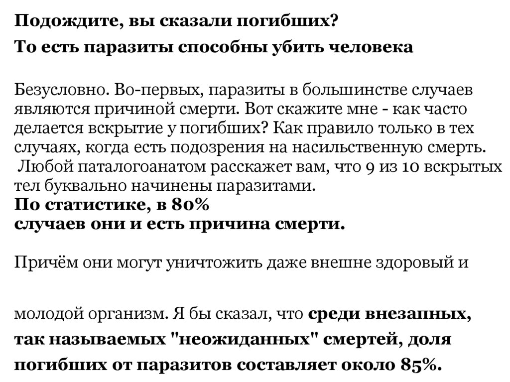 Подождите, вы сказали погибших?То есть паразиты способны убить человека