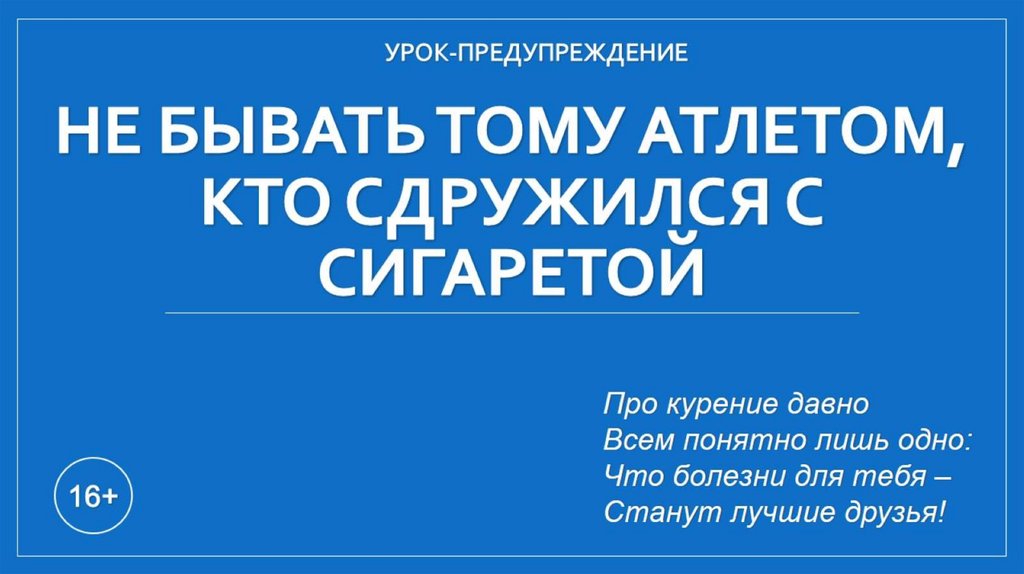 1. Не бывать тому атлетом, кто сдружился с сигаретой