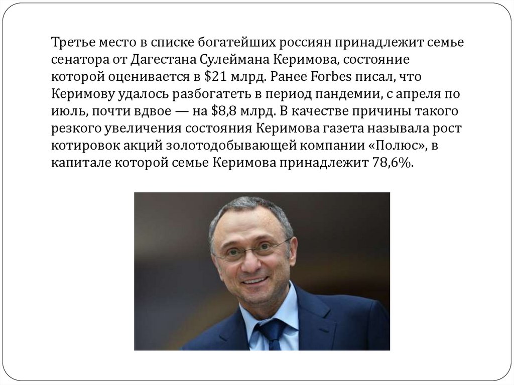 Керимову удалось разбогатеть в период пандемии, с апреля по