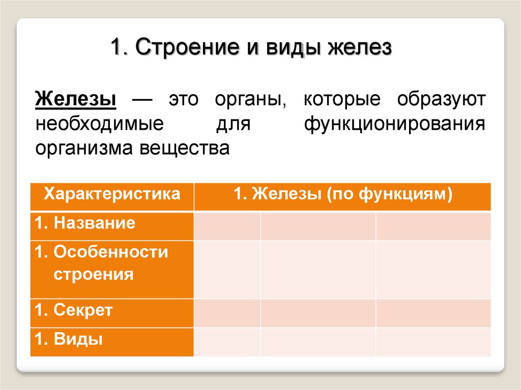 1. Строение и виды железЖелезы — это органы, которые образуют