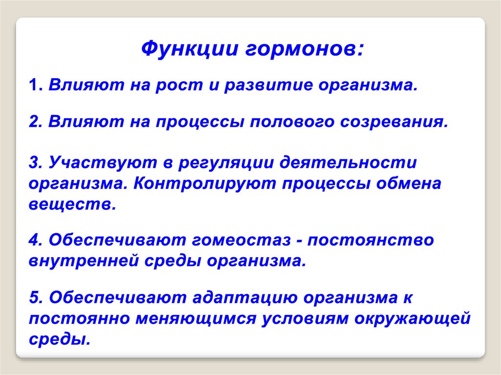 организме: рост, репродуктивную функцию,