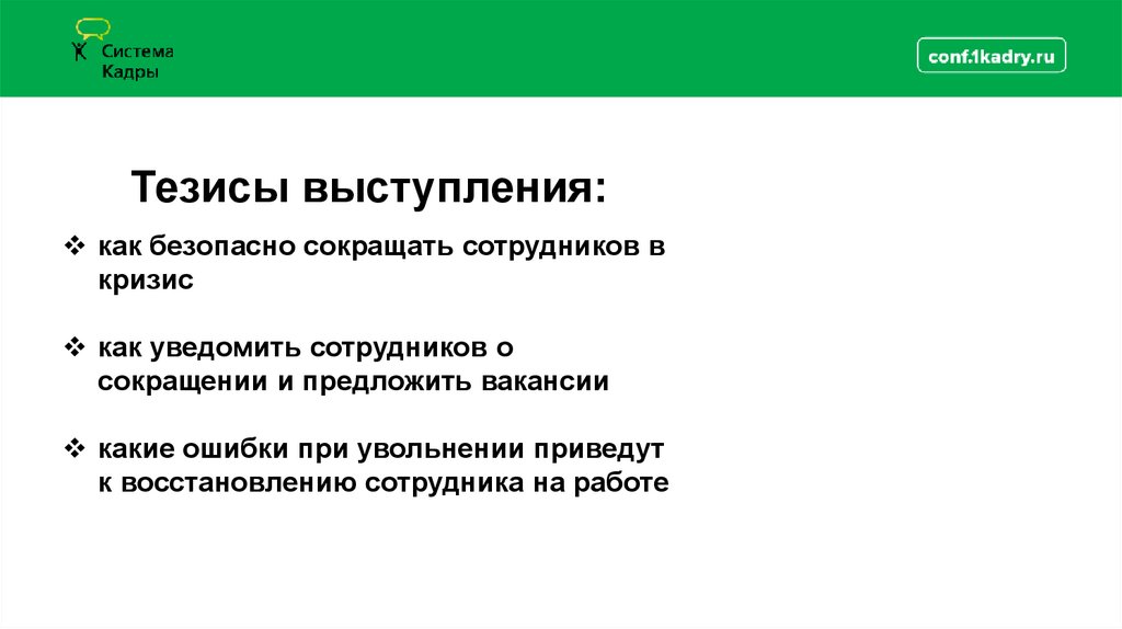 Тезисы выступления:как безопасно сокращать сотрудников в