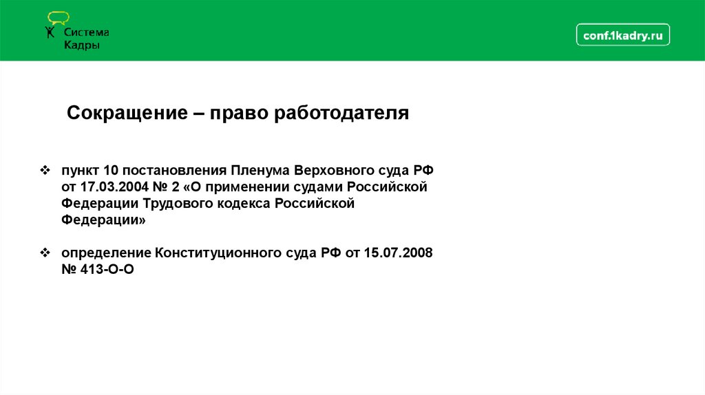 Сокращение – право работодателяпункт 10 постановления Пленума Верховного суда РФ