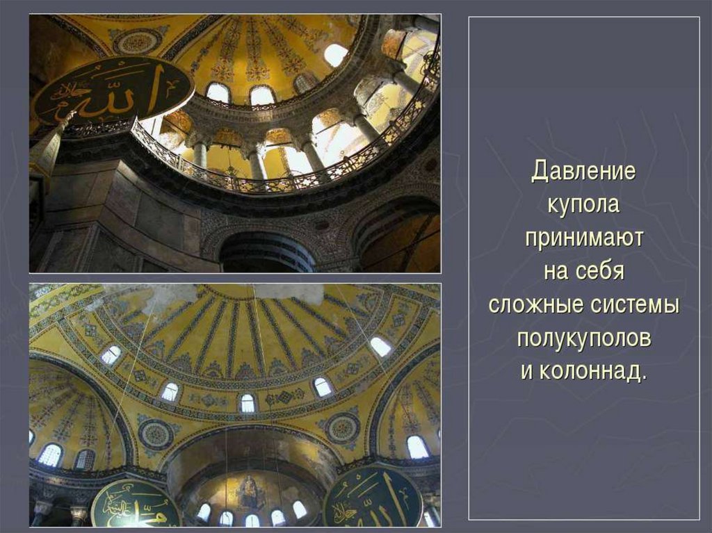 49. - Св. София – это купольная базилика, промежуточное звено между базиликой и крестово-купольным храмом - Купол держится на